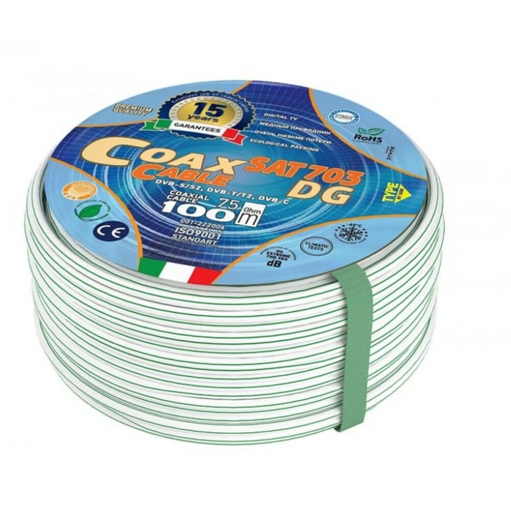 SAT-703 DG AVS Electronics коаксиальный кабель премиум-класса. Пользуется большим спросом, так как подходит для подключения спутникового телевидения высокой четкости. Передает видеосигнал без потерь и обеспечивает качественное изображения. Также находит применение в распределительных сетях систем цифрового и кабельного телевидения.