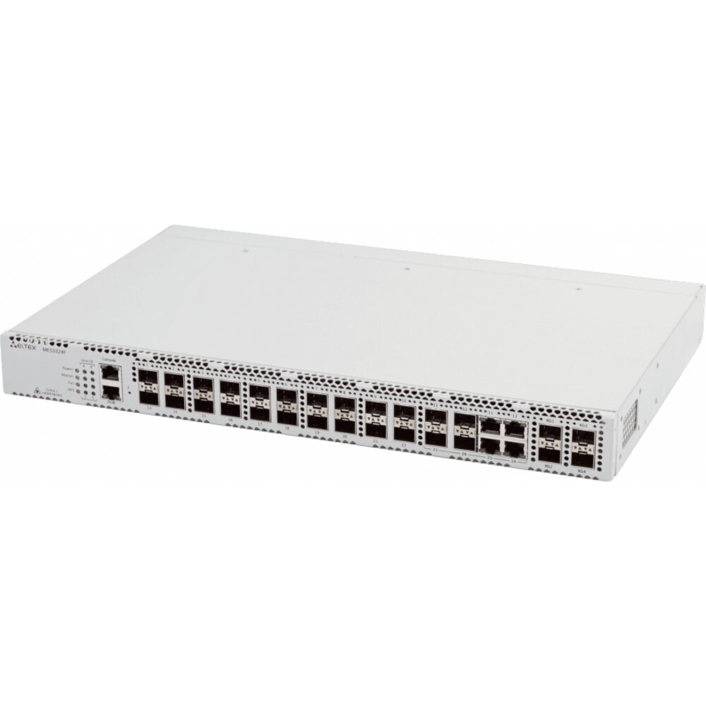MES3324F - коммутатор агрегации, предназначен для использования в операторских сетях в качестве коммутатора уровня агрегации района или транспортного коммутатора. Устройство имеет значительный запас по производительности благодаря универсальным интерфейсам.