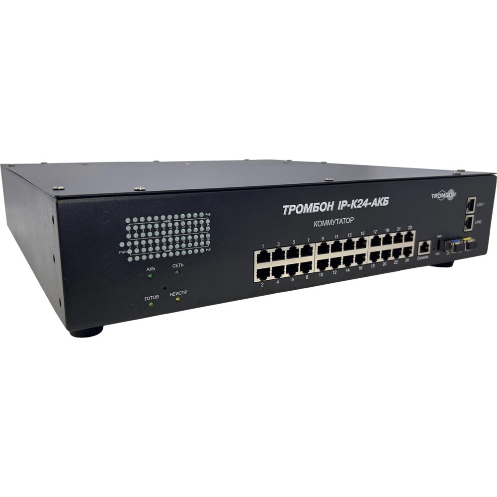Сетевой коммутатор Тромбон IP-K24-АКБ предназначен для соединения нескольких узлов компьютерной сети в пределах одного или нескольких сегментов сети. Служит для приема и передачи данных между функциональными блоками. Поддержка технологии РоЕ позволяет передавать питание на различные удалённые устройства и периферию.