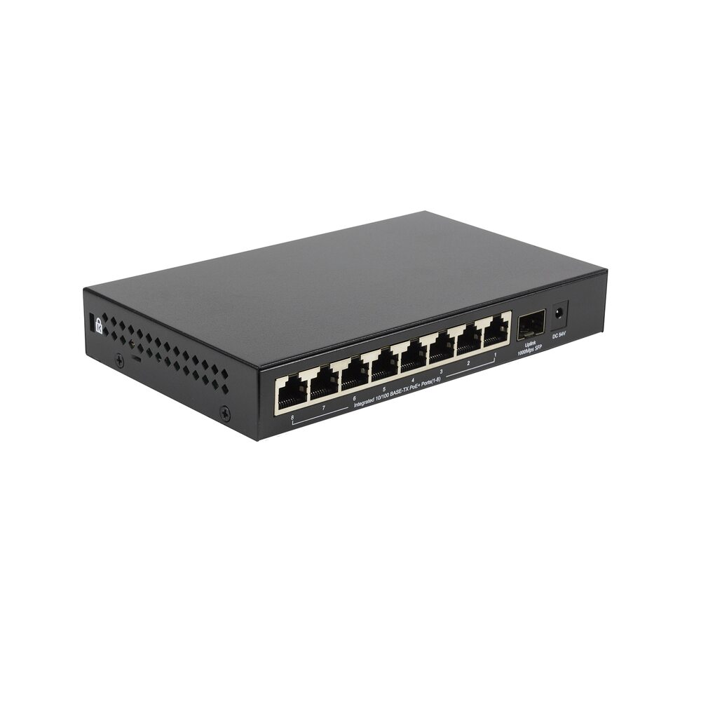 | Порты | • 8 портов 100Base-TX (RJ-45) с поддержкой PoE • 1 порт 1000Base-X SFP |