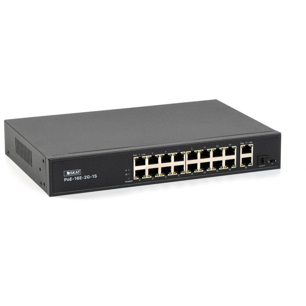 SKAT PoE-16E-2G-1S представляет собой специализированный неуправляемый PoE коммутатор для использования в системах видеонаблюдения и безопасности. Характеризуется высокой надежностью работы благодаря защите от электростатических разрядов и перепадов напряжения, позволяет организовать качественную передачу информации в сети Ethernet.