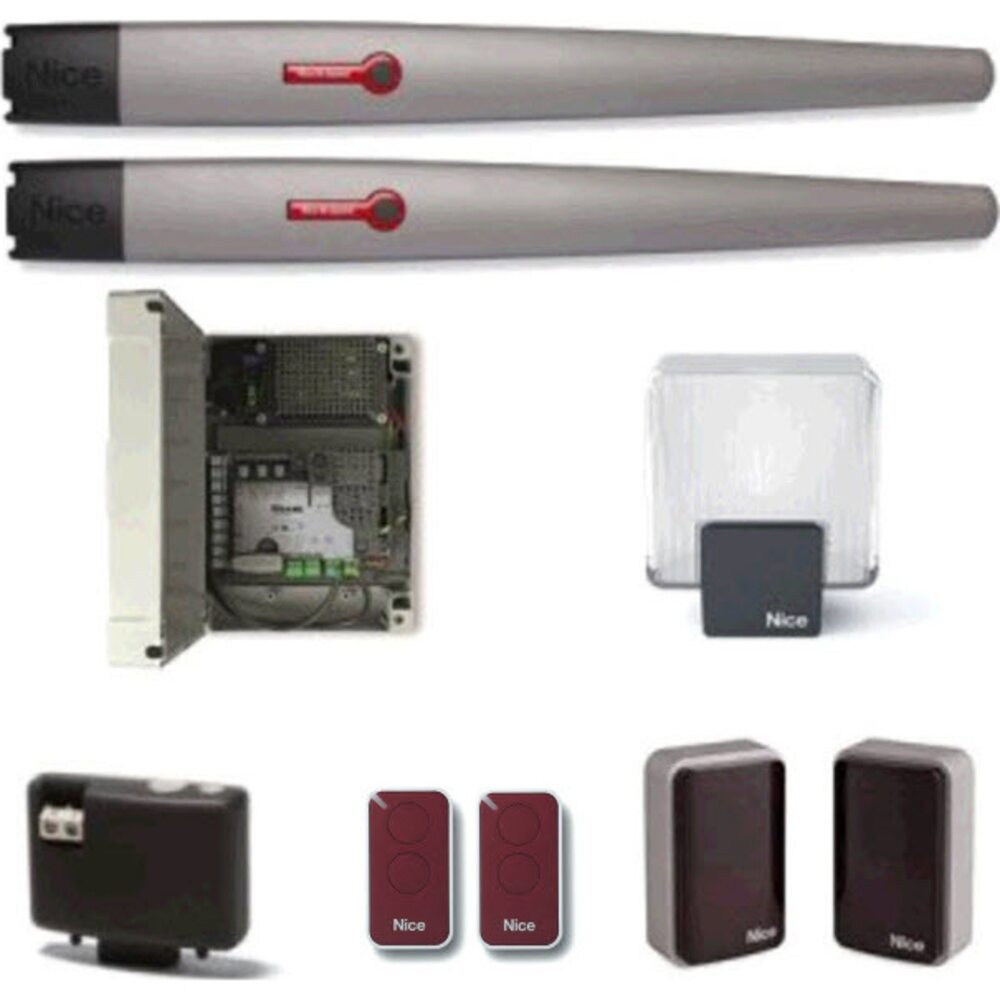 Комплект для распашных ворот с шириной сворки до 5м и весом до 200кг, или до 2,3м и весом до 400 кг. Питание двигателя: DC 24В, 120 Вт, интенсивность: 95 циклов/час, усилие: 1800 Н, IP44, -20+50C, 965х115х105 мм.