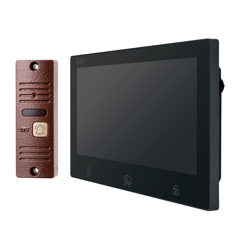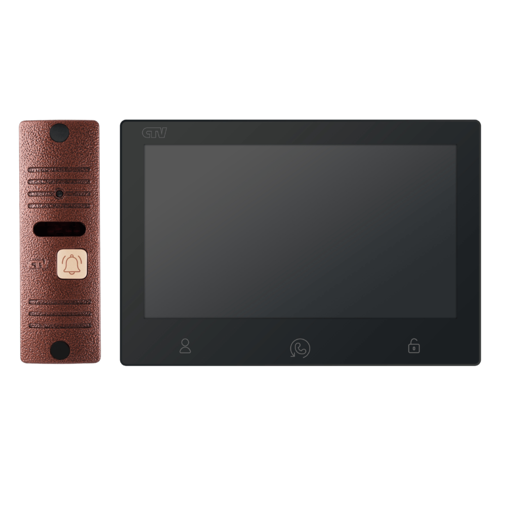 Монитор видеодомофона 7' формата AHD с записью видео и детекцией движения. Мультиформатная вызывная панель для видеодомофонов с углом обзора 80°.