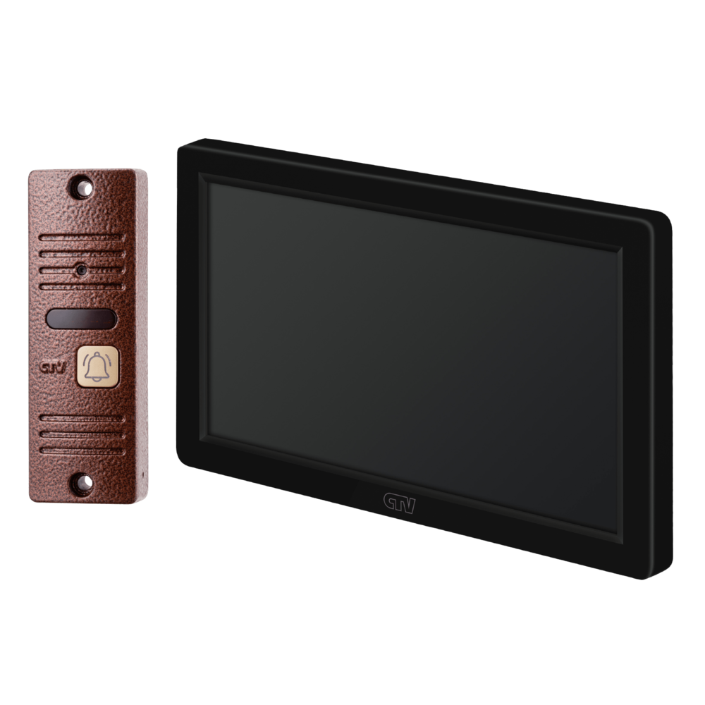 Интерьерный монитор видеодомофона 7' формата AHD с сенсорным экраном и встроенной памятью на 400 фото. Мультиформатная вызывная панель для видеодомофонов с углом обзора 80°.