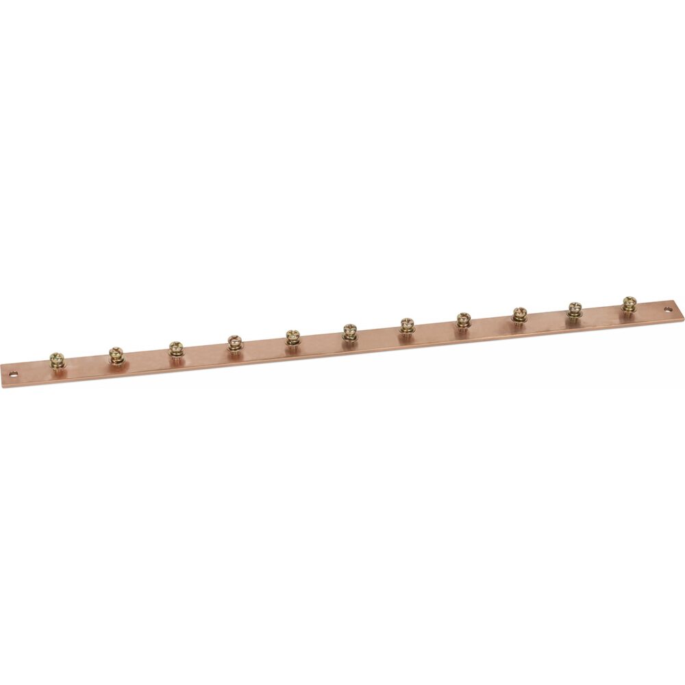 Шина заземления предназначена для установки в телекоммуникационные шкафы и стойки размерностью 19. Служит для заземления установленного оборудования. Нагрузочная способность 200А. Представляет собой прямоугольный металлопрокат из сплава меди сечением 25х3 мм. Имеет 11 точек подключения с винтами М6.