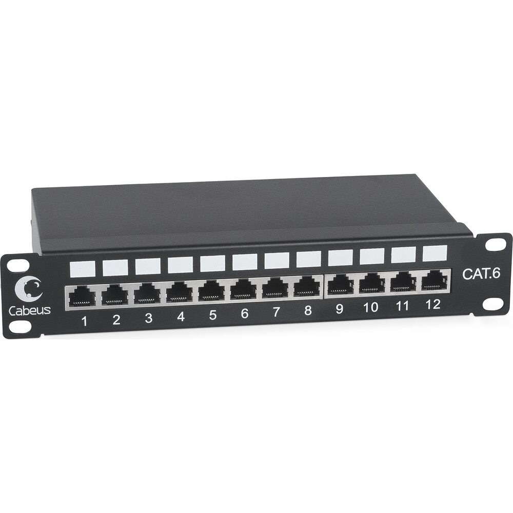 Cabeus PL-12-Cat.6 10-SH-Dual IDC Патч-панель 10, установочный размер 236 мм, 12 портов RJ-45 полностью экранированная, категория 6, Dual IDC