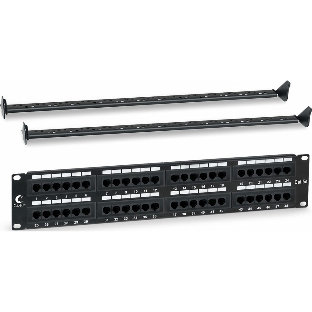Cabeus PL-48-Cat.5e-Dual IDC Патч-панель 19 (2U), 48 портов RJ-45, категория 5e, Dual IDC, с задним кабельным организатором