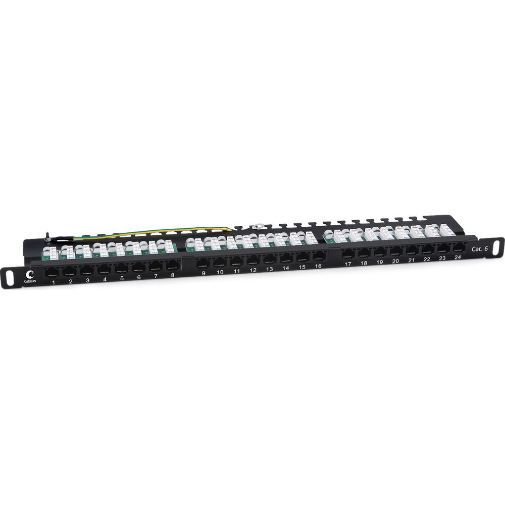 Неэкранированная патч-панель Cabeus выполнена в 19 формате и предназначена для установки в телекоммуникационные шкафы и стойки. Соответствует характеристикам категории 6. Высота 0,5U. Имеет 24 порта RJ-45.
