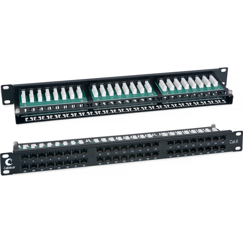 Cabeus PLHD-48-Cat.6-Dual IDC-1U Патч-панель высокой плотности 19, 1U, 48 портов RJ-45, категория 6, Dual IDC