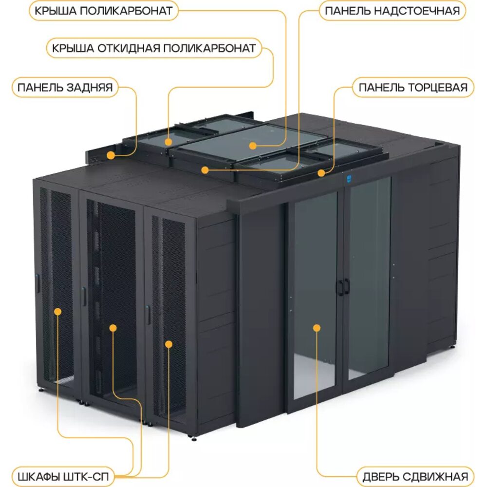| Высота шкафов коридора, U | 48 |