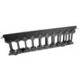 Горизонтальный кабельный органайзер с пластиковыми “пальцами” и металлической крышкой на защёлках предназначен для удобной организации коммутационного кабеля в шкафах.