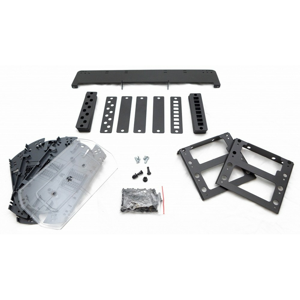В комплекте изделия имеются сменные планки (панели) размером 130х30 мм для установки проходных адаптеров, а также сплайс-кассеты для организации волокон. Сменные планки (панели) под проходные адаптеры крепятся пластиковыми фиксаторами на лицевой панели корпуса. Боксы поставляются без пигтейлов и проходных адаптеров.
