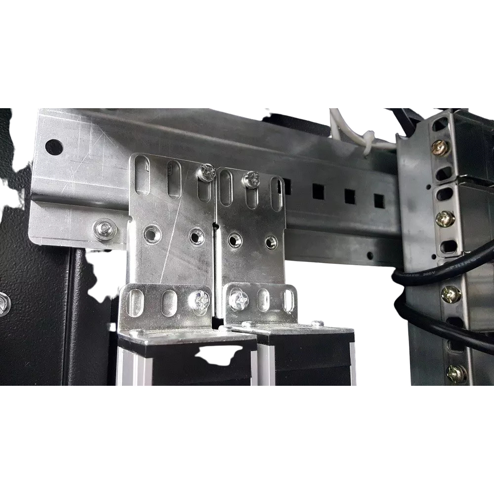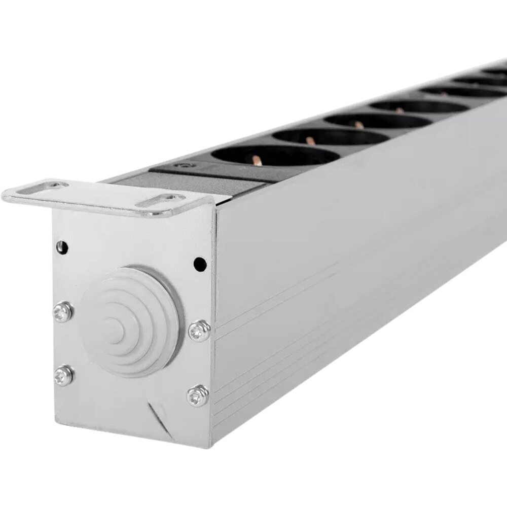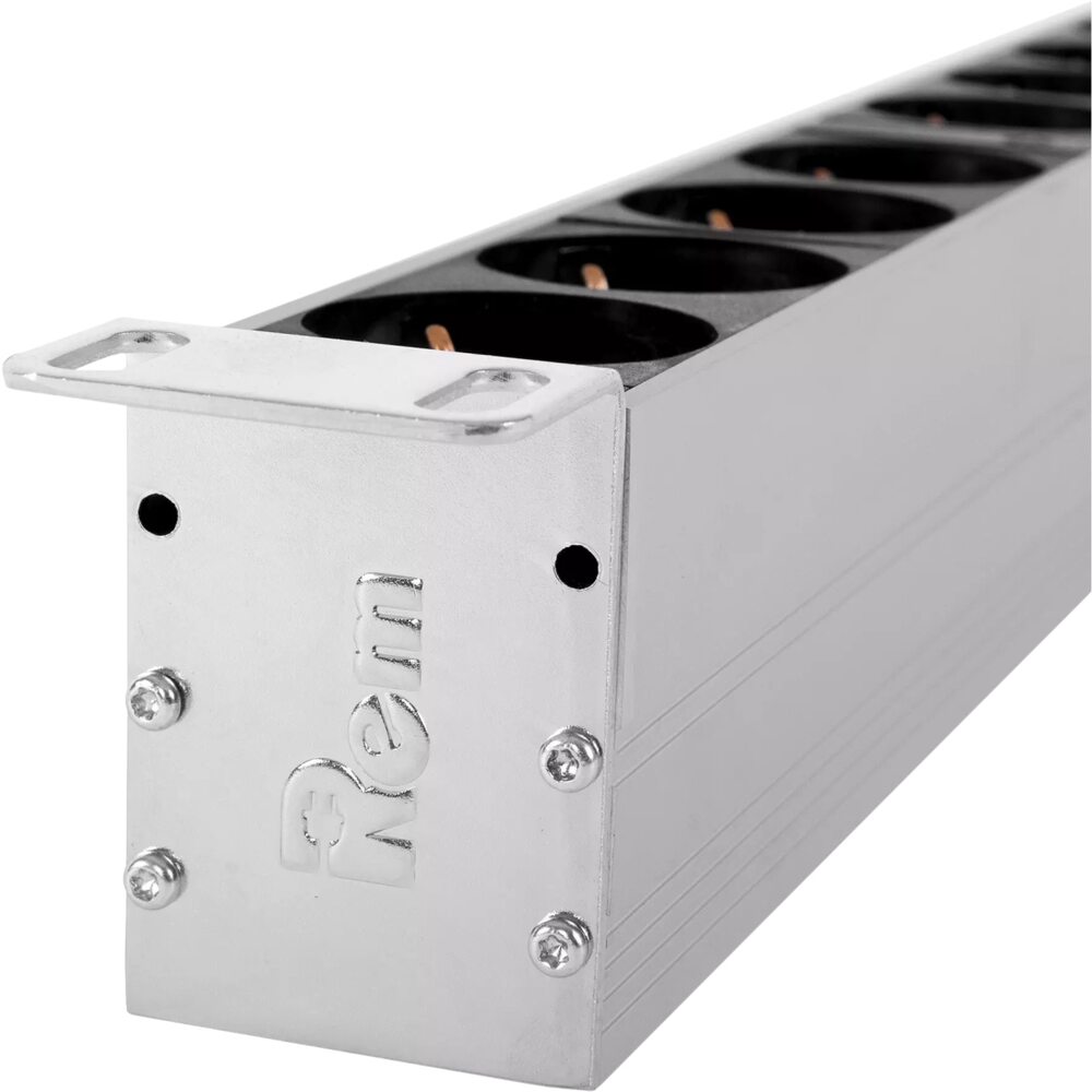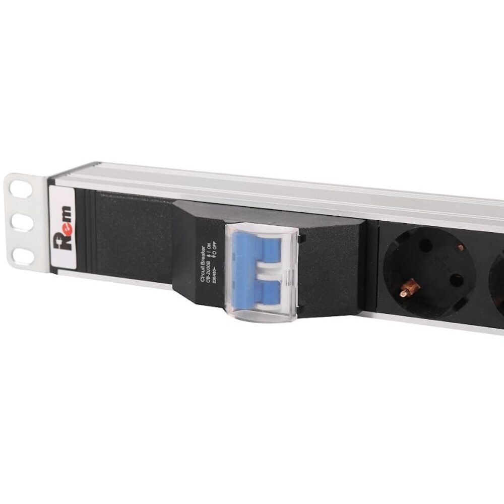 Вертикальный 2-контурный блок силовых розеток Rem R-32-20C13-10C19-A-I-1420-K для стойки или шкафа высотой 3348 U оборудован двумя клеммными колодками, двумя защитными 16-амперными автоматическими выключателями, десятью IEC 60320 C19 и двадцатью IEC 60320 C13. Выполнен в системе несущих конструкций 482.6 мм по ГОСТ 28601.2 (19 по МЭК 297).