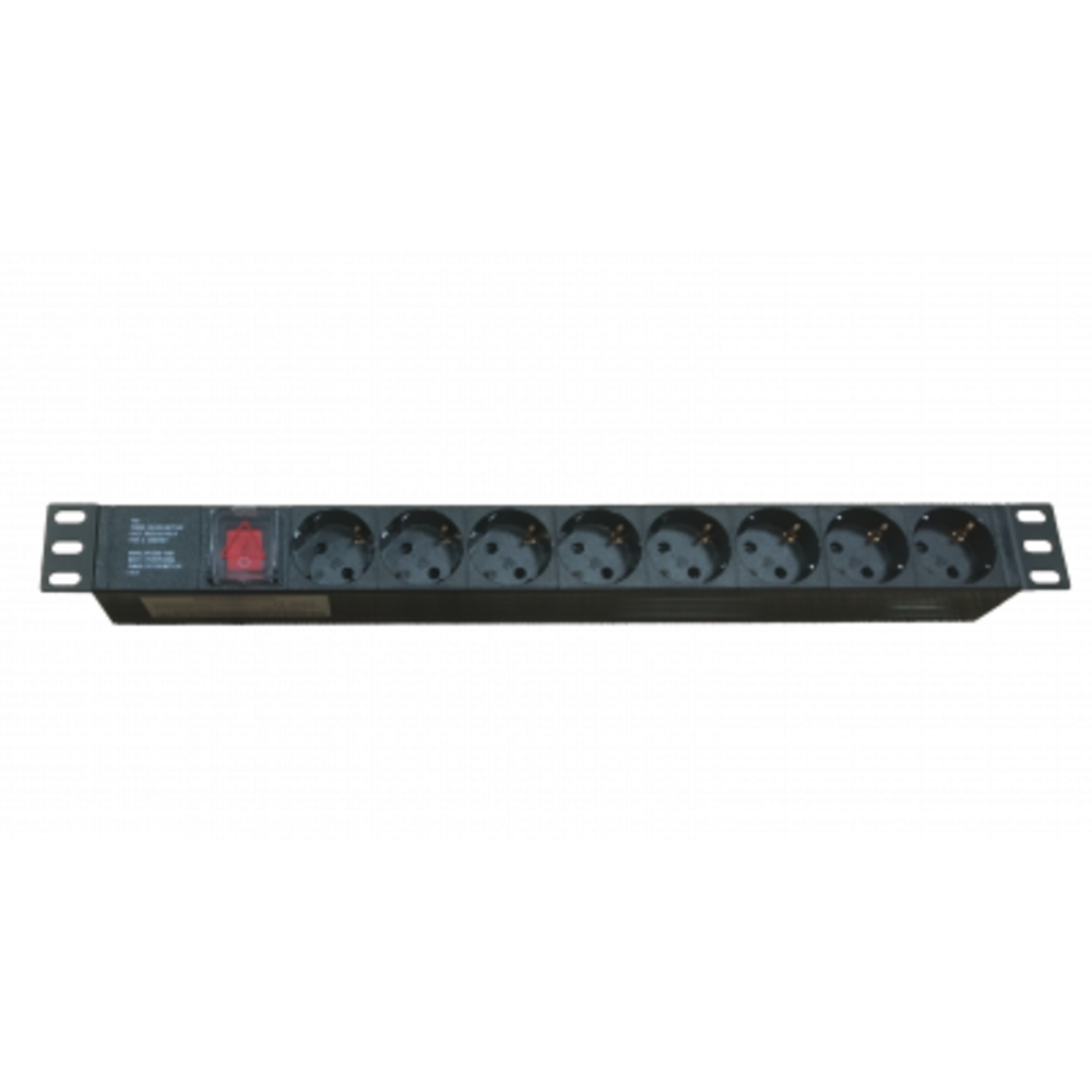 Блок электрических розеток 220В, 19', 1U, 8 розеток ( Schuko) с выключателем, разъем для шнура питания IEC320 (C14).Без сетевого шнура в комплекте