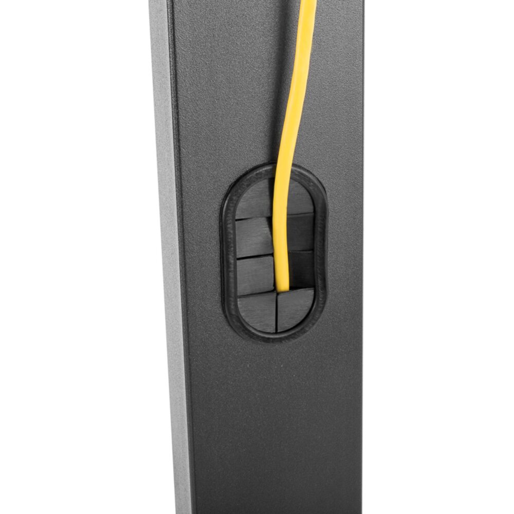 В столбы стойки интегрирован кабель-канал, позволяющий зафиксировать и спрятать провода ТВ и аксессуаров.