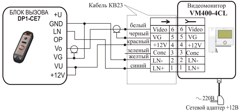 Схема подключения VM400-4CL в составе многоабонентского домофонного комплекса