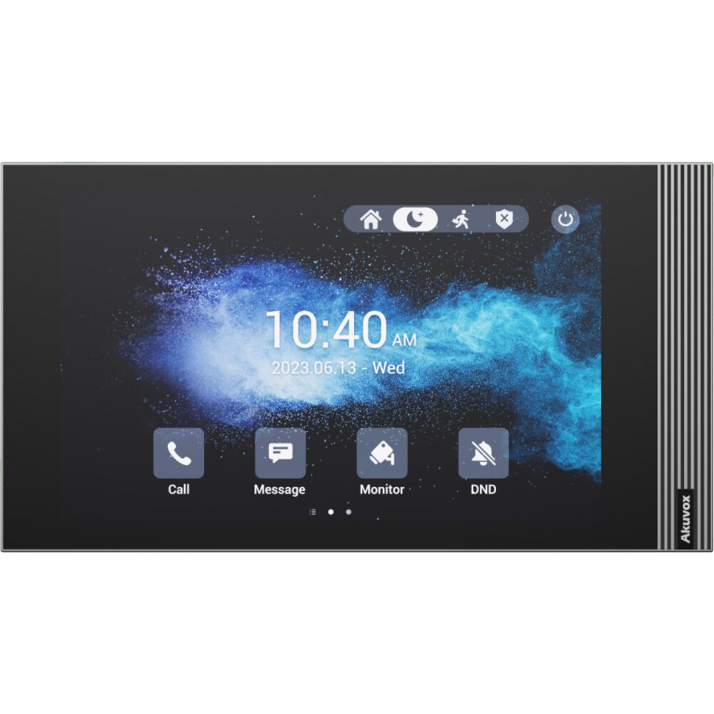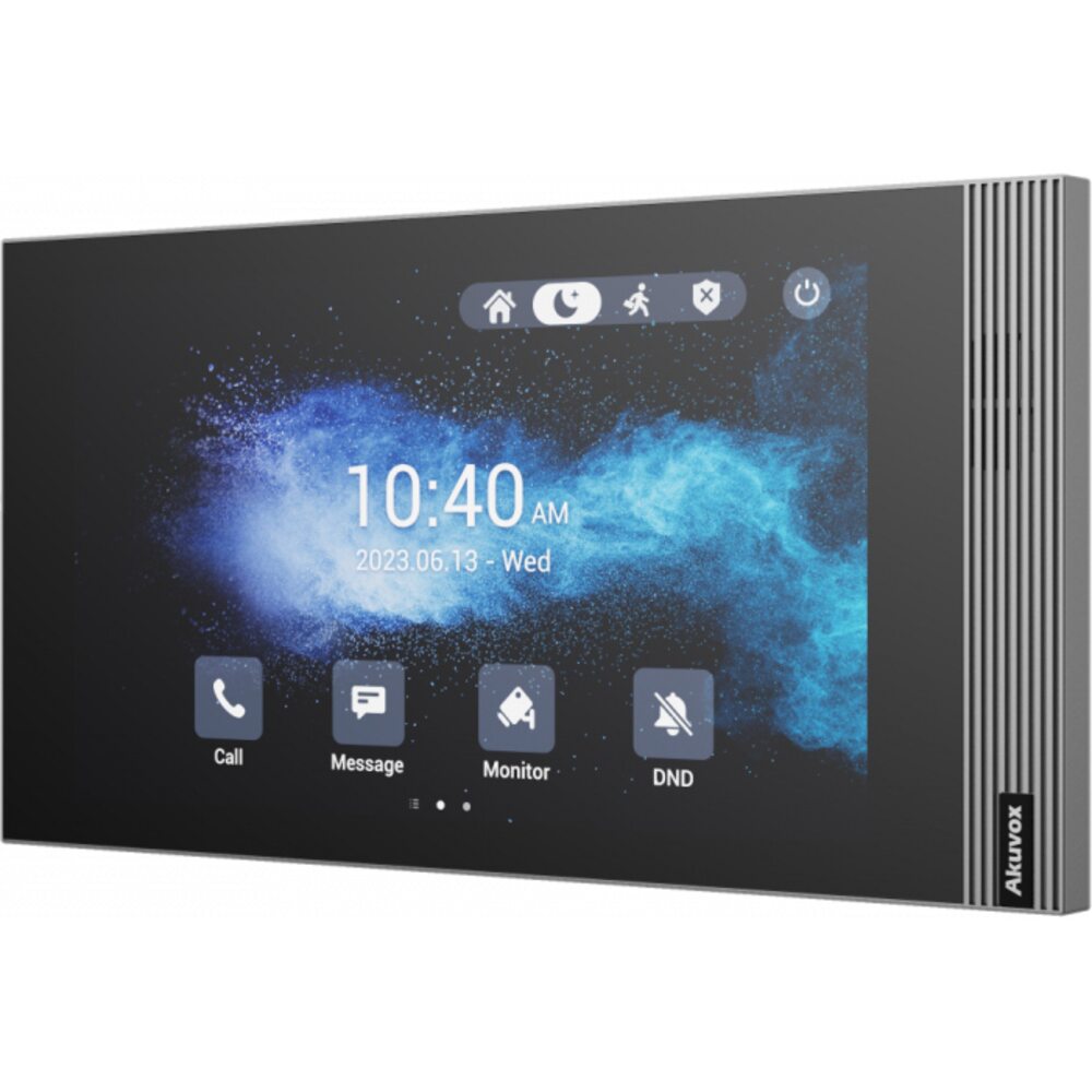 Многофункциональный домашний монитор Akuvox S562W с операционной системой Linux обеспечивает аудио и видеосвязь с домофонами по протоколу SIP 2.0. Он обеспечивает непревзойденное качество работы с сенсорным экраном благодаря ненавязчивому, компактному дизайну и блестящему 7-дюймовому емкостному сенсорному дисплею.