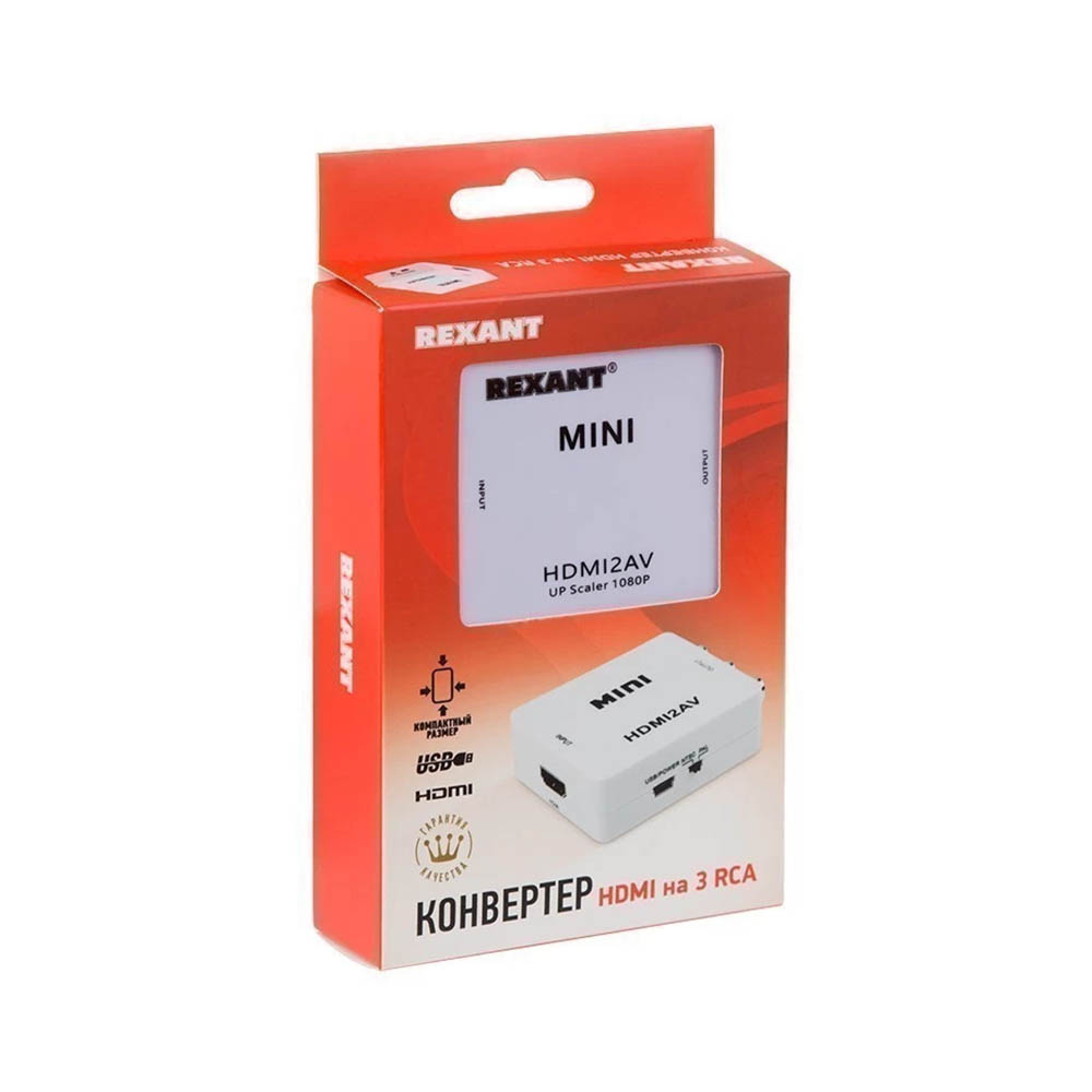 Конвертер HDMI на 3 RCA, пластик, белый REXANT 17-6931