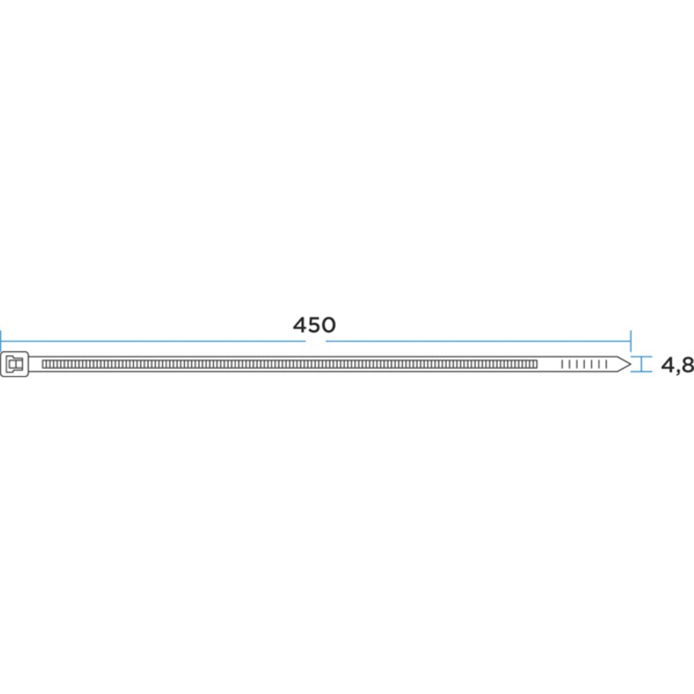 В упаковке поставляются 100 стяжек размером 450x4,8 мм.