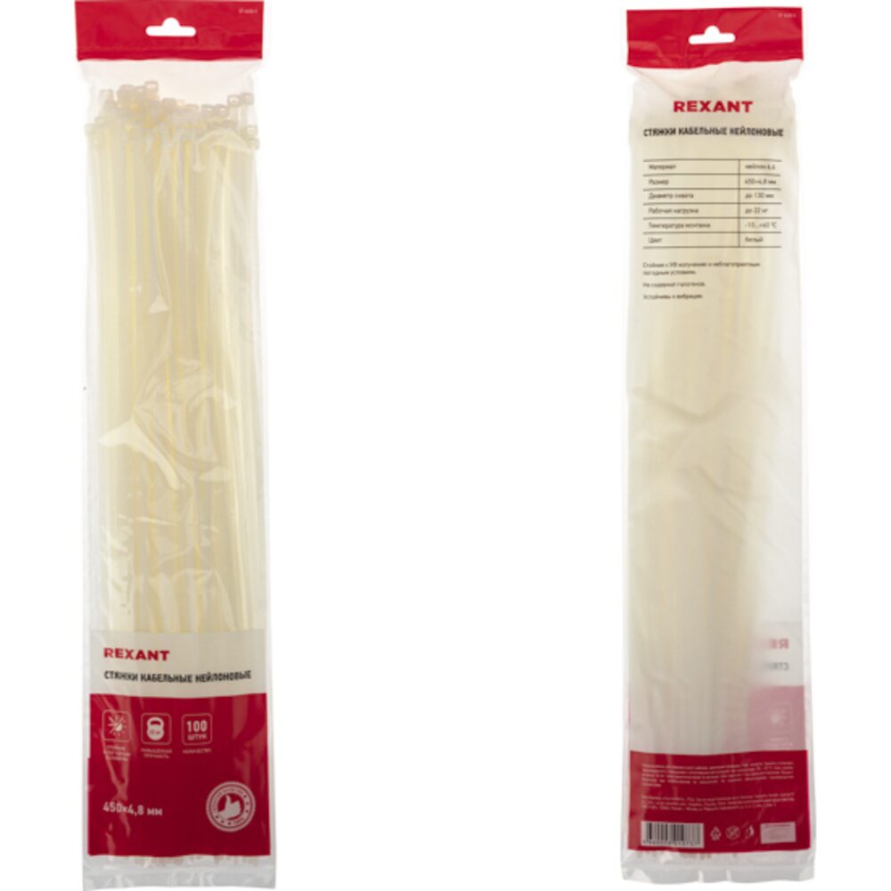 Стяжка кабельная нейлоновая 450x4,8мм, белая (100 шт/уп) REXANT (07-0450-5)