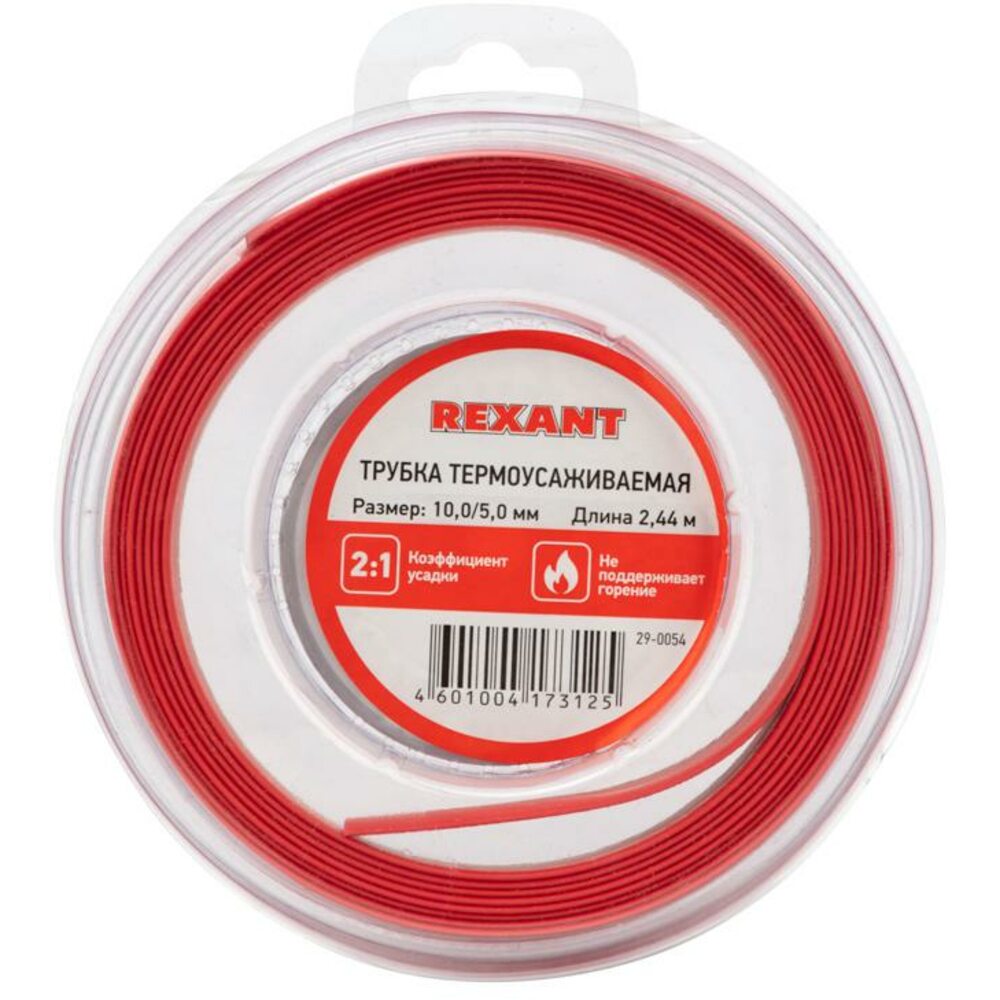 Трубка термоусаживаемая 10.0/5.0мм красн. ролик 2.44м Rexant 29-0054