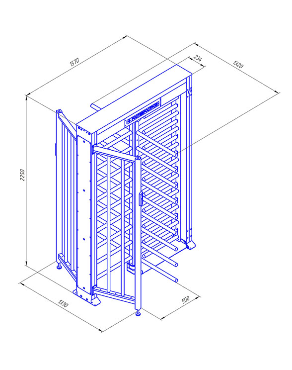 - Габаритные размеры турникета (ширинаxдлинаx высота): 2270x1600x2250 мм