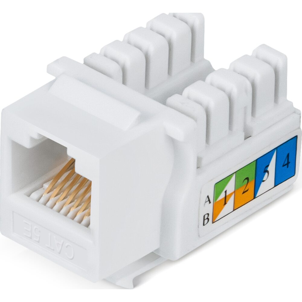 Неэкранированный модуль Keystone 90 ° категории 5e производства Cabeus имеет классическую конструкцию, контакты IDC совместимы с одножильными проводниками сечением 22-26 AWG, разводка проводников - согласно стандарта T568 А и B. Подключаемый кабель легко монтируется с помощью инструмента 110 типа. Электрические характеристики соответствуют требованиям стандартов.