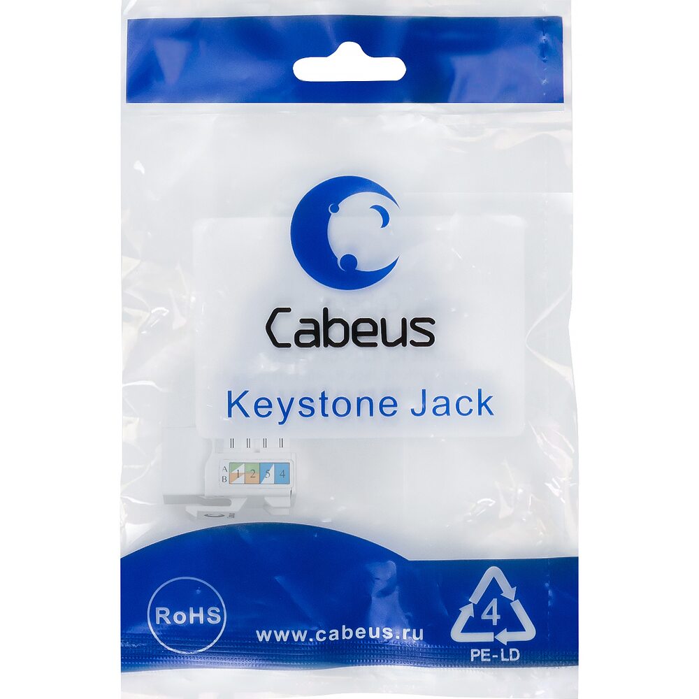 Cabeus KJ-RJ45-Cat.5e-90 Вставка Keystone Jack RJ-45, категория 5e, заделка тип 110, белая