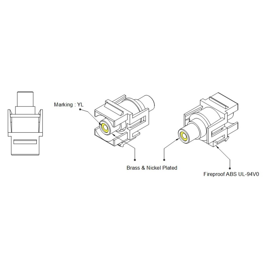 Hyperline KJ1-RCA/YL-D-WH - вставка формата Keystone Jack с проходным адаптером RCA (желтый), D type, ROHS, белая.