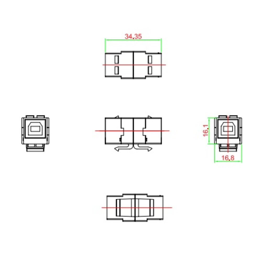Hyperline KJ1-USB-B2-WH - вставка формата Keystone Jack с проходным адаптером USB 2.0 (Type B), ROHS, белая.