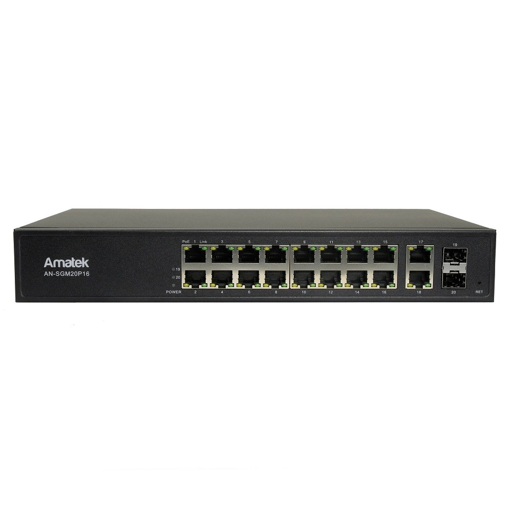 14 портов PoE+ (до 30Вт), позволяющие передавать питание и данные по одному кабелю.