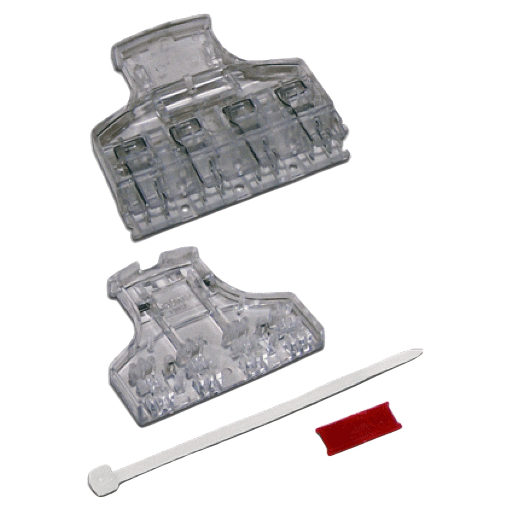 В комплектацию вилки входит пластиковая стяжка для фиксации оболочки кабеля и двусторонняя цветная вставка-маркер с изображением компьютера и телефона.
