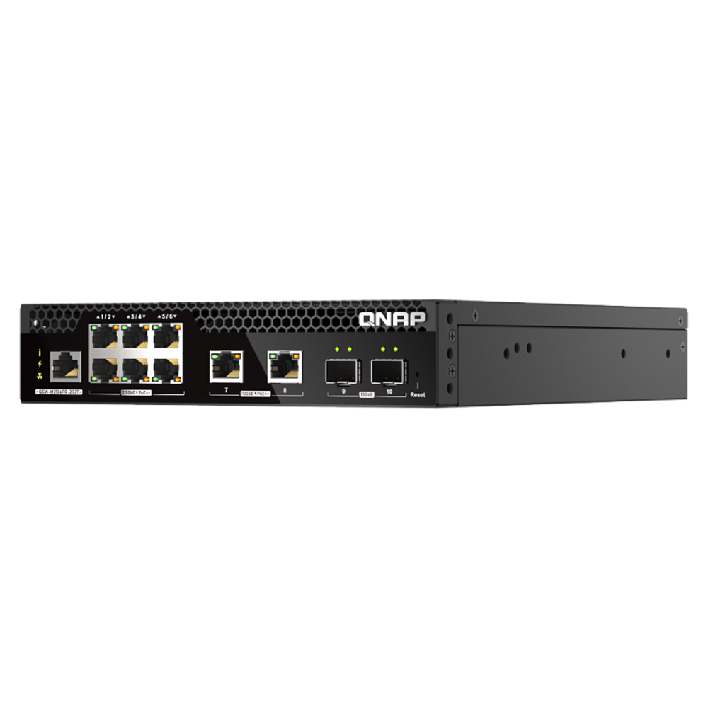 - QSW-M2106PR-2S2T обеспечивает функции управления полосой пропускания и пакетами для повышения производительности сети за счет группирования IP-адресов и управления полосой пропускания.
