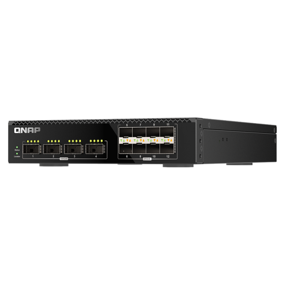 QSW-M7308R-4X оснащён четырьмя 100-гигабитными портами QSFP28 и восемью 25-гигабитными портами SFP28 для создания гибридных высокоскоростных сетей. Интерфейсы 25-гигабитного Ethernet SFP28 обратно совместимы с интерфейсами 10-гигабитного Ethernet SFP+/1-гигабитного Ethernet SFP, а интерфейс 100-гигабитного Ethernet QSFP28 может быть подключен к коммутаторам 100-гигабитного Ethernet+ или напрямую к серверам/сетевым хранилищам 100-гигабитного Ethernet+.