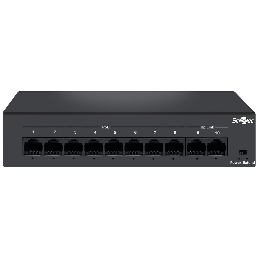| Порты: | PоE порты: 8 RJ-45 (10/100 Мбит/с), Uplink порты: 2 RJ-45 (10/100 Мбит/с) | ||