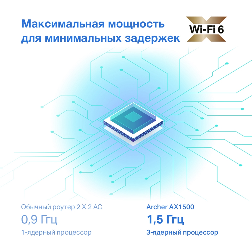 Archer AX10 поддерживает два диапазона частот: 2.4 ГГц (до 300 Мбит/с) и 5 ГГц (до 1200 Мбит/с), что дает общую скорость до 1500 Мбит/с. Это обеспечивает высокоскоростное подключение для всех ваших устройств, включая ноутбуки, смартфоны, умные телевизоры и игровые приставки.