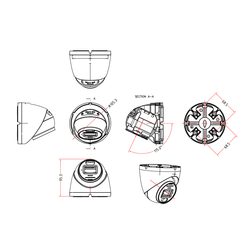 Размеры IP видеокамеры Ø105,3 x 95.3 мм