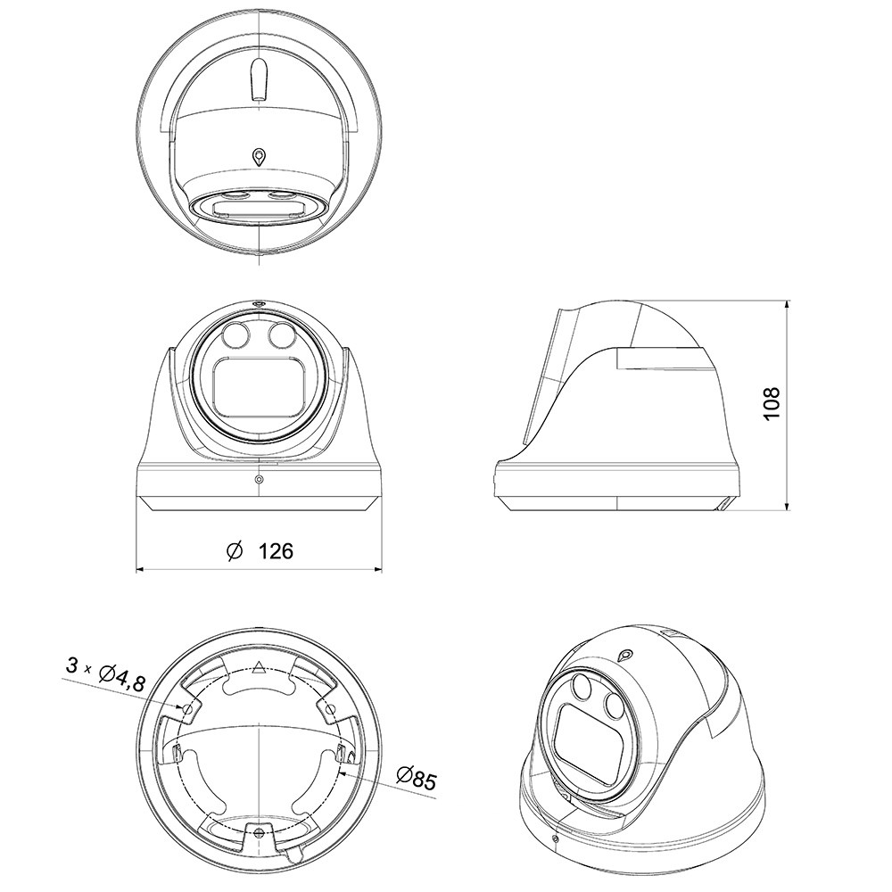 Размеры IP видеокамеры Ø128х108 мм