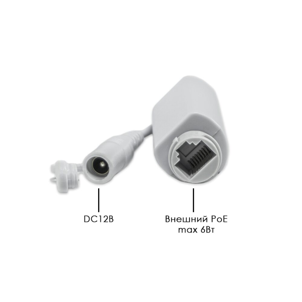 Питание DC12В(450мА), Внешний PoE max 6Вт (на кабеле)