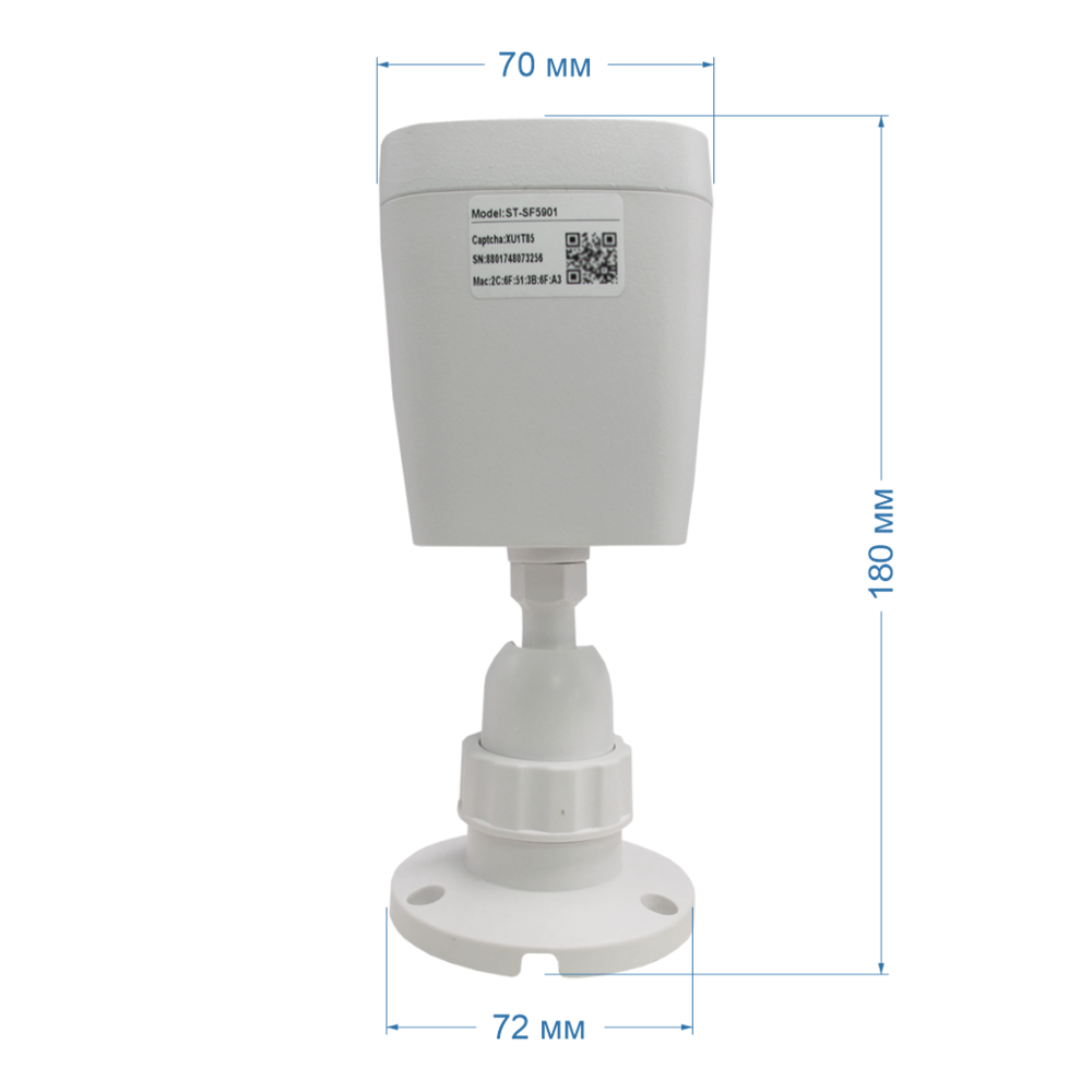 Видеокамера ST-SF5901, Белый, цветная IP,Разрешение: 5Mp (2880*1620), с ИК подсветкой,3 приватные зоны/коррекция углов/зеркалирование,детектор движения/человека, Цилиндрическая, Фокусн. расст.: 2,8 мм (Гор.111°/ Верт. 61°/Диаг. 129°) , Сенсор: 1/2.7” progressive scan CMOS, Дальн. ИК подсветки: до 30 м, Светочувствит. (мин. освещ.): 0,02 Lux (цвет) / 0 Lux (с IR), Кодек сжатия: H.264/H.265/MJPEG (только второй поток), Кодек сжатия аудио: G.711A/U , Аудио вход/выход: Встроенный микрофон/-, Дополнит. возможности: 3 приватные зоны / коррекция углов/зеркалирование, Напряжен. питания: 12 В, PoE: 802.3af (вариант А/В), ИК-фильтр: Механический, Функц. улучш. изобр.: BLC/ HLC/ DWDR/DNR/ AWB/ MWB/Anti-flicker, Smart IR: есть, CV380, IPEYE, Кол-во к/с: 30 к/с, Регулир. кронштейна: 3D-Ось, Раб. темп.: -30...+60, Материал корпуса: Металл, пластик