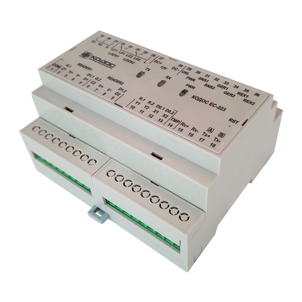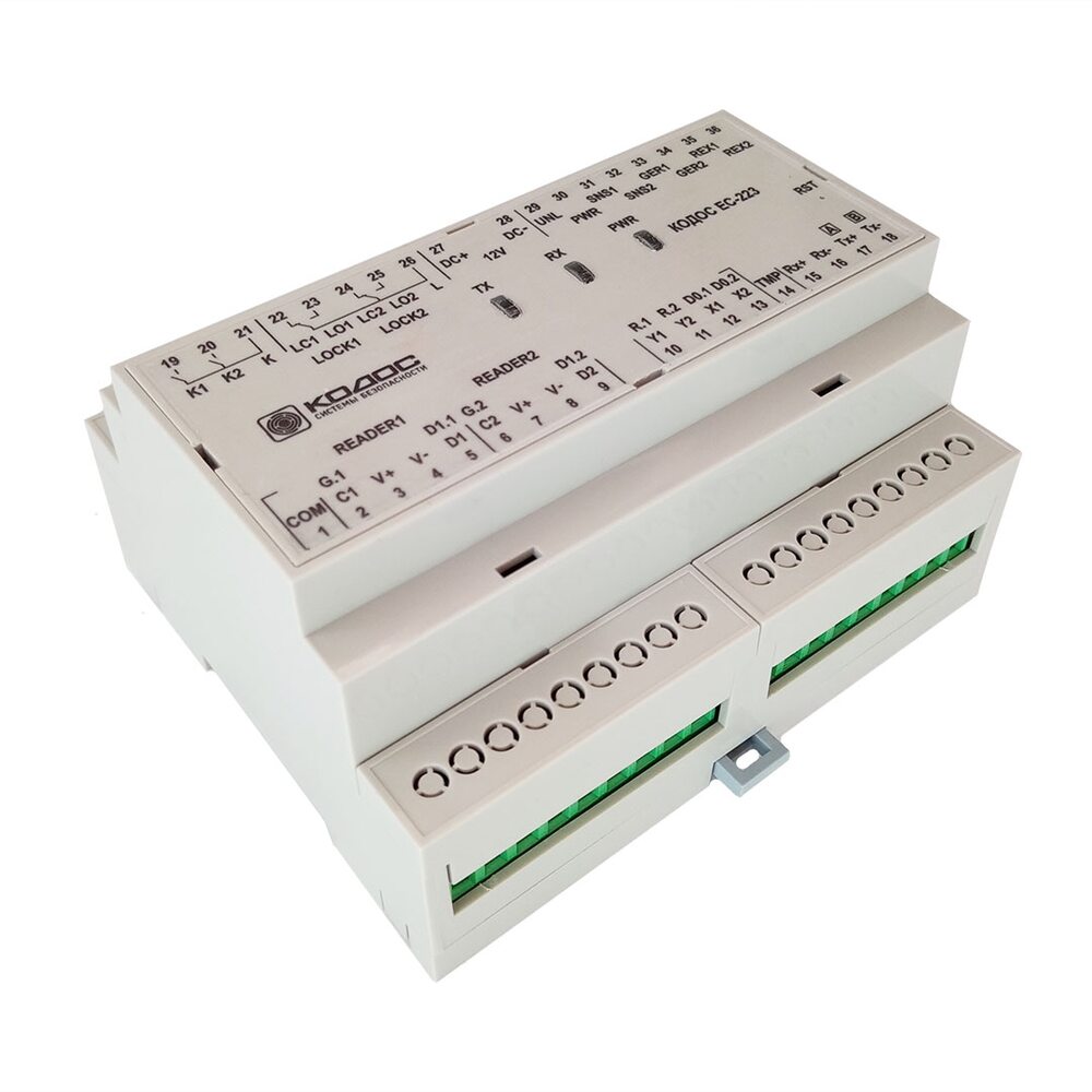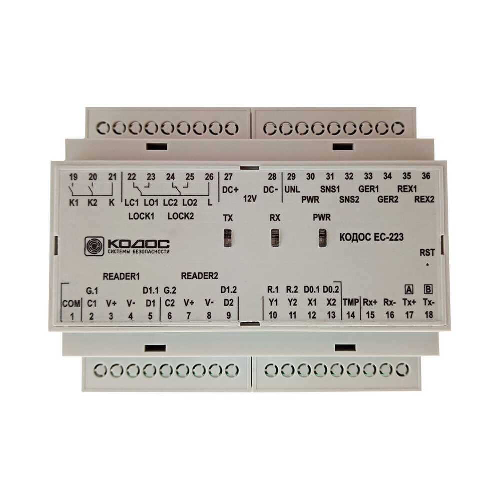 Контроллер «КОДОС EC-223.30» с интерфейсами связи RS-485 и КОДОС ЕС, а так же с дополнительной защитой цепей, находящихся снаружи охраняемого помещения.