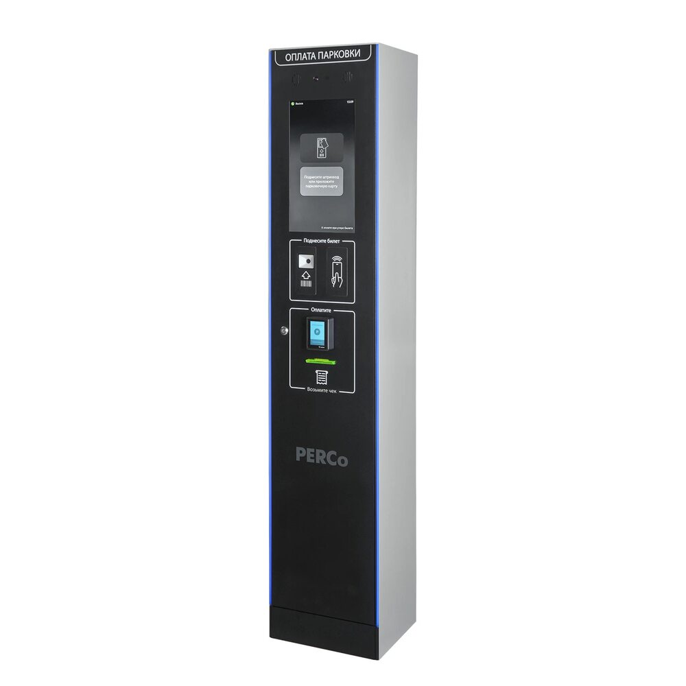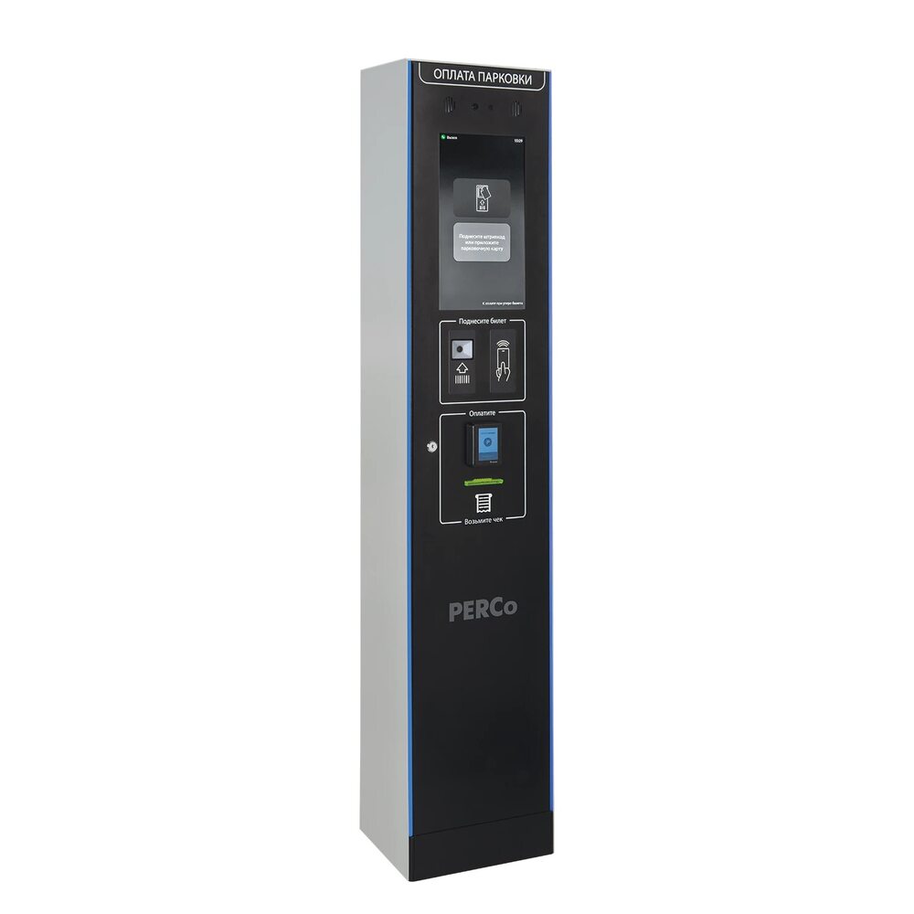 Паркомат PERCo PT-02 представляет собой комплекс автоматизированной системы для оплаты услуг парковки, восстановления потерянных билетов и применения скидок по чекам. Интегрированный мультиформатный считыватель и встроенный терминал безналичной оплаты позволяют обеспечить полный цикл оплаты без использования наличных денег, что особенно актуально для объектов с высоким потоком транспорта. Прибор оснащён цветным сенсорным дисплеем 18.5 дюймов, обеспечивающим понятную навигацию и демонстрацию информационных сообщений. Встроенная камера 4 МП Fisheye (рыбий глаз) позволяет осуществлять видеонаблюдение и распознавание штрихкодов и QR-кодов. Мультиформатный считыватель EMM, HID, MIFARE обеспечивает работу с различными видами идентификаторов, включая смартфоны. К аппаратуре применены инновационные технологии климат-контроля с автоматической системой подогрева и охлаждения, фильтрации воздуха и избыточного давления для предотвращения пыли, что повышает надёжность работы в различных климатических условиях – от -40°C до +45°C. Корпус покрыт цинковым слоем и порошковым покрытием для защиты от коррозии. Эргономика предусматривает кнопку вызова оператора, микрофон для голосовой связи, а также встроенную динамическую подсветку для повышения информативности. Устройство обладает компактными размерами и простым обслуживанием, что оптимально для внедрения на территории паркингов и иных объектов с ограниченной площадью. Функциональные особенности включают опцию автоматического продления абонементов, применение скидок, распознавание номеров автомобилей для ускорения процесса выхода, а также защиту от холодного пуска и возможность работы при различных погодных условиях.