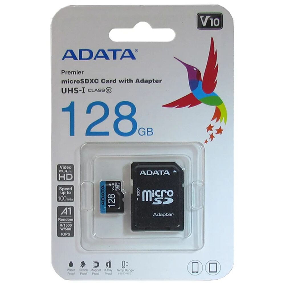 ADATA AUSDX128GUICL10A1-RA1 MicroSDXC Class 10 UHS-I A1 100/25 MB/s (SD адаптер)