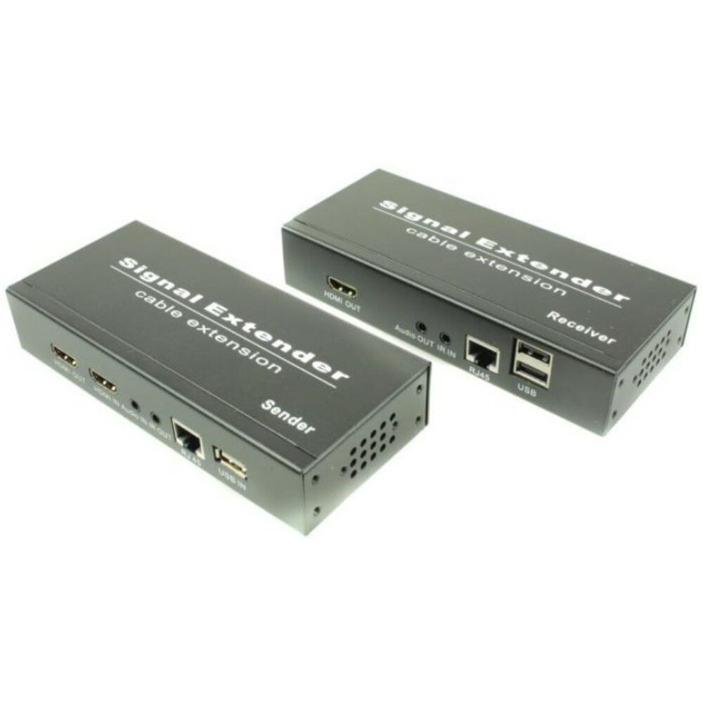 - Расстояние передачи HDMI + USB + ИК по сети Ethernet неограниченно (с использованием сетевых GE коммутаторов или удлинителей 100/1000 Мбит/с),