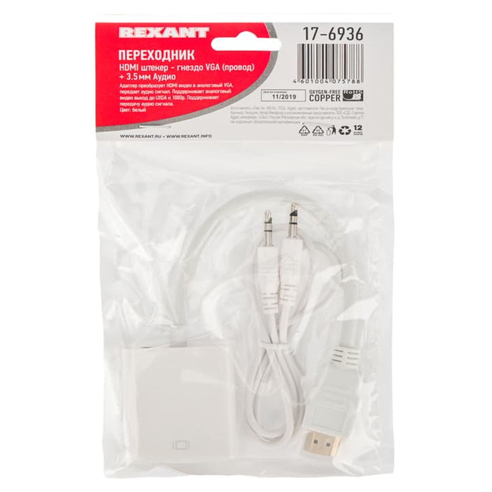 Переходник штекер HDMI - гнездо VGA, провод + шнур стерео 3,5мм REXANT 17-6936
