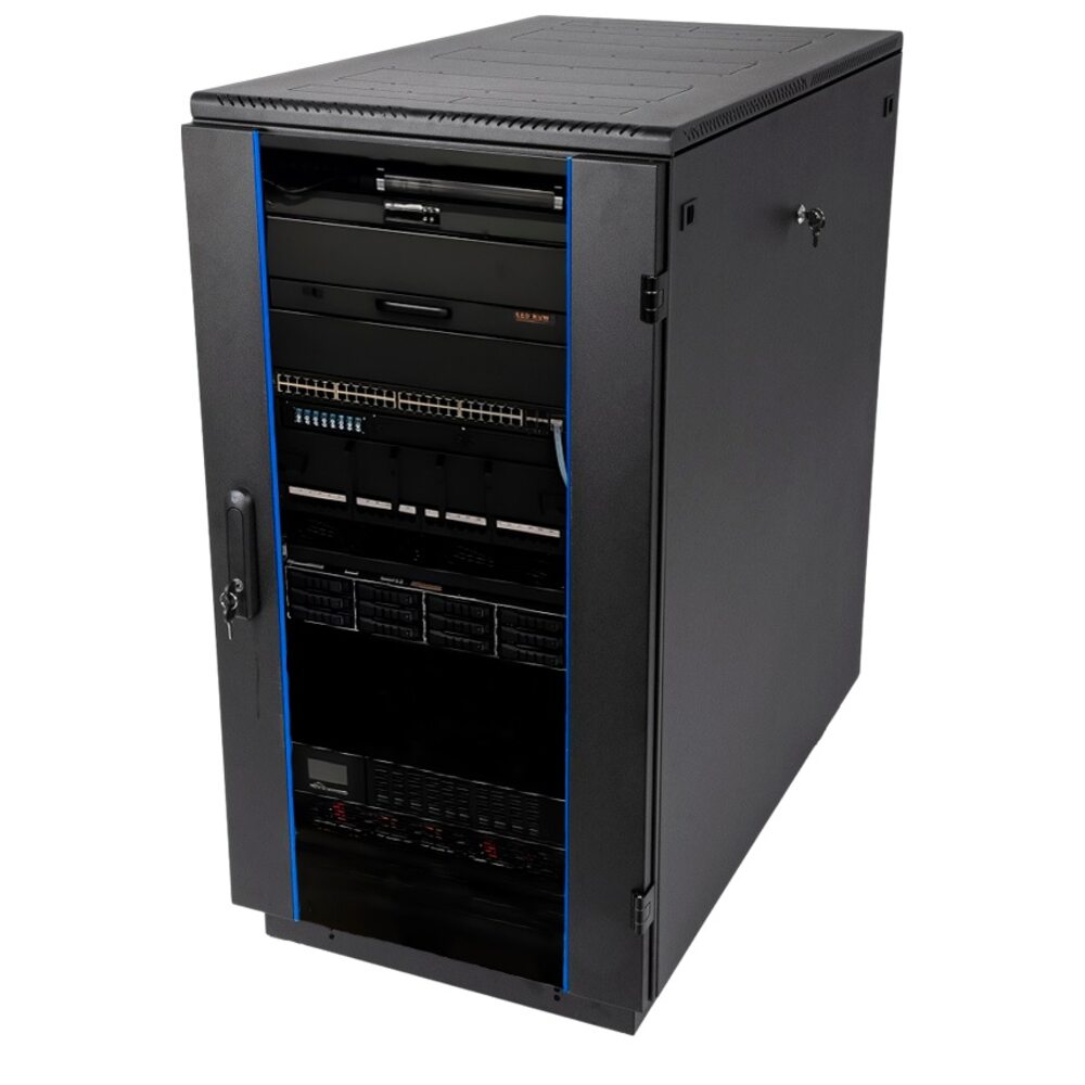 Серверный шкаф в сборе представляет собой комплекс аппаратно-программных систем, интегрированных в единую защищенную конструкцию для обеспечения бесперебойной работы оборудования системы видеонаблюдения.