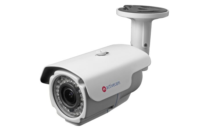 IP-камера ActiveCam AC-D2163IR3 выполнена в форм-факторе Bullet. Сверху на корпусе закреплен солнцезащитный козырек с возможностью регулировки выступа, для удобства монтажа с тыльной стороны в устройство интегрирован поворотный кронштейн. Модель комплектуется вариофокальным объективом с фокусными расстояниями 2.8-12 мм (углы обзора 99°-37° / 52°-21°). Набор интерфейсов представлен: сетевым разъемом RJ-45 (поддерживается технология питания PoE), гнездом для подключения БП 12В, портом USB, аудиовходом/выходом и тревожными входом/выходом. Наличие двустороннего аудиосопровождения позволяет регистрировать и отправлять звуковые сообщения к месту инсталляции прибора. В рамках организации комплексной системы обеспечения безопасности через GPIO-интерфейсы к камере могут быть подсоединены дополнительные датчики охраны периметра, пожарные и другие детекторы для мониторинга возникновения нештатных ситуаций. Архив Edge Storage объемом до 128 ГБ может быть сформирован путем подключения USB-накопителя к соответствующему порту устройства. Максимальное потребление энергии не превышает 7 Вт.