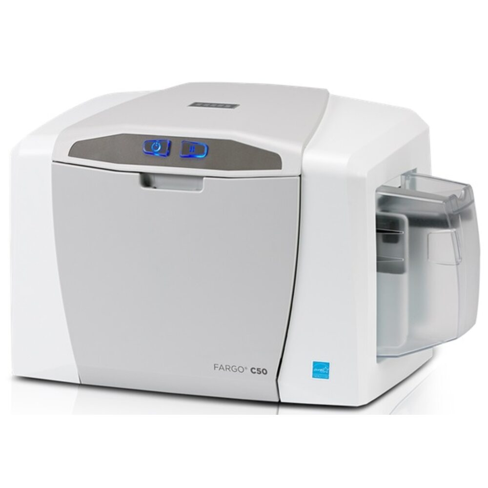 Благодаря своей компактной конструкции, принтер карт C50 можно легко разместить в любом, даже самом небольшом офисе. Для обеспечения максимальной эффективности в принтер встроены приложение для печати удостоверений личности Swift ID™ и автоматическая утилита для контроля состояния принтера через встроенную программу диагностики FARGO Workbench™. Кроме того, в принтере используется легко устанавливаемый универсальный картридж с печатной лентой и возможностью очистки поверхности карт, который максимально упрощает процесс печати.