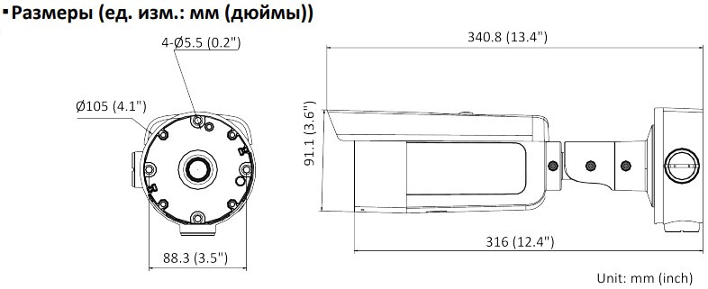 Дальность ИК-подсветки От 2.8 до 12 мм: до 60 м