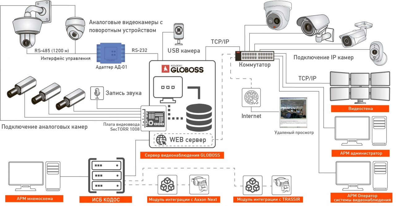 - Установленное ПО: GLOBOSS 24 (лицензия на подключение 24-х камер)